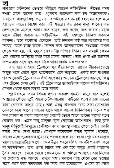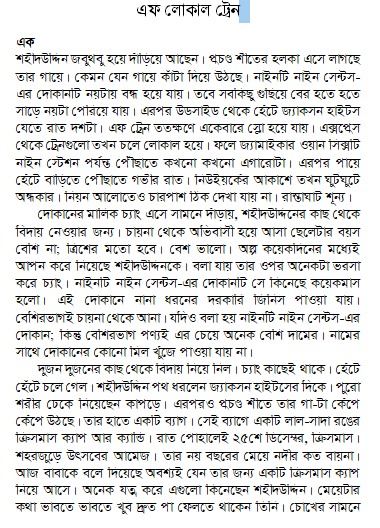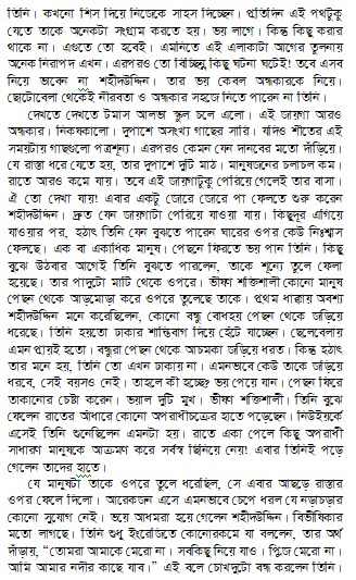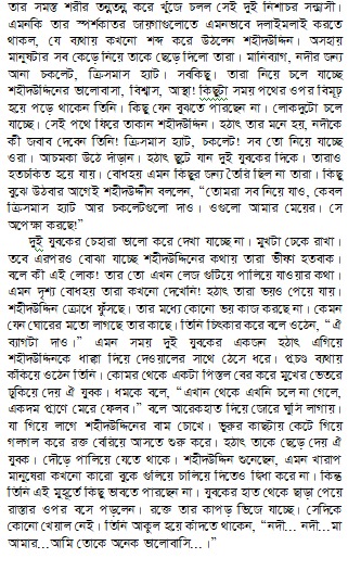 এইটুকুন একটা ভূত। মানে বাচ্চা ভূত আর কি! এই বাচ্চা ভূতটা চলে নিজের ইচ্ছে মতো। যা ইচ্ছে হয় তার তাই করে। কথায় কথায় ভেংচি কাঁটে ভেংচি কেটেই শেষ না। বুড়ো মানুষের মোত খুকুর খুকুর করে কাশে। কাশি শেষ হলে আবার কপালের চামড়া বটে চোখ দুটো কেমন করে কপালে টেনে তুলে নেয়। তারপর পা দুটো ওপরের দকিে তুলে হাতে ভর দিয়ে ধনিধনিতা, ধনিধনিতা করে তিনটা নাচ দেয়।