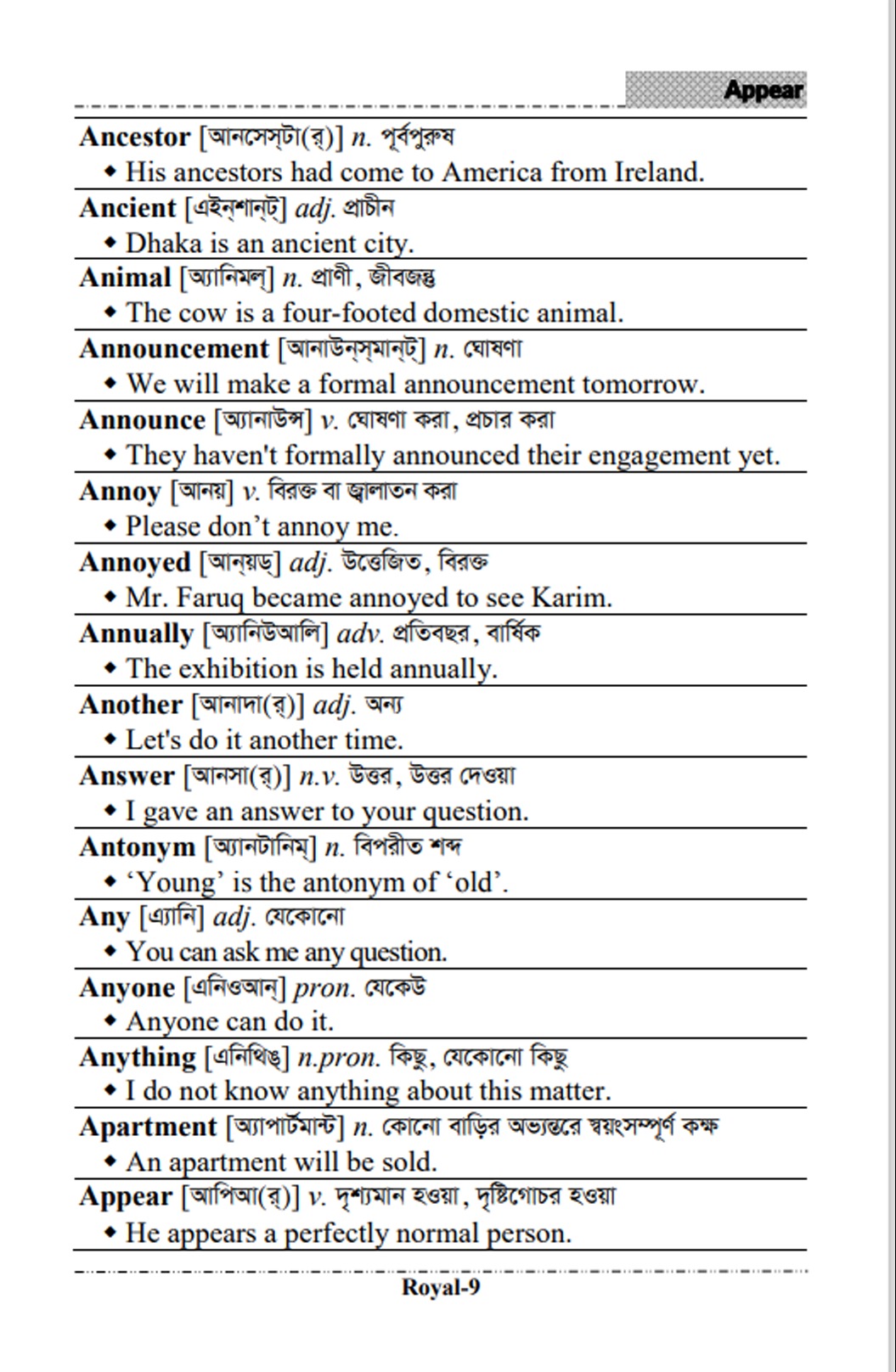 English Textbook Based Dictionary - Class 8