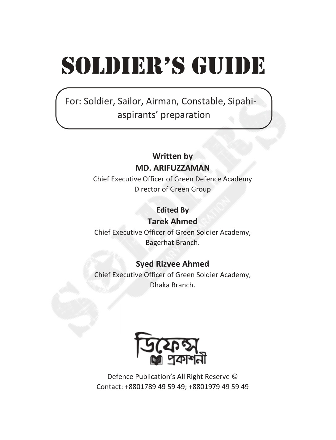 আপনার সকল প্রস্তুতির জন্য এখনই "সোলজার'স গাইড" বইটি অর্ডার করুন। বিস্তারিত জানতে মেসেজ করুন বা কমেন্ট করুন। পোস্ট টি শেয়ার করুন আরো মানুষের কাছে পৌঁছে দিন এই গুরুত্বপূর্ণ বইটির তথ্য