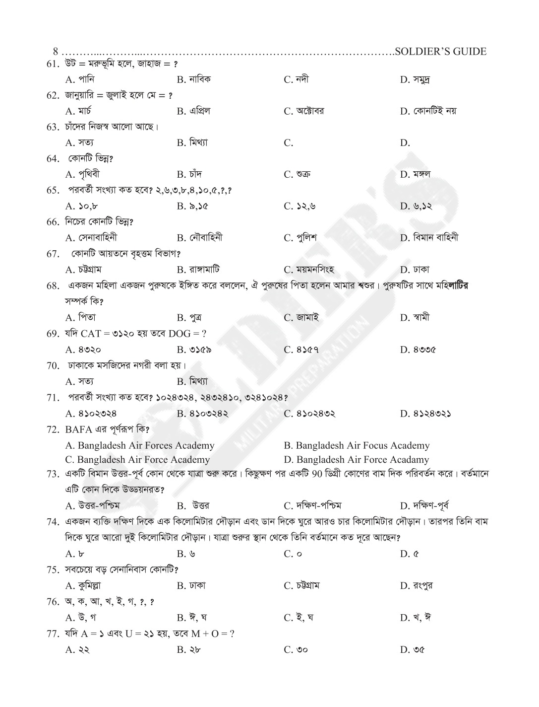 ১। এই একটি বই থেকেই আপনি সেনা, নৌ, বিমান বাহিনী, পুলিশ কনস্টেবল এবং বিজিবির পরীক্ষার প্রস্তুতি নিতে পারবেন। অর্থাৎ একটি বই থেকে সকল বাহিনীর প্রস্তুতি নিতে পারবেন।